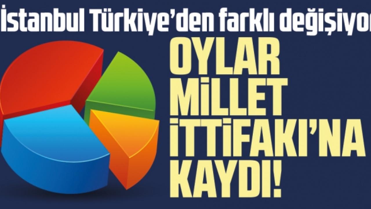 İstanbul’da, 2018’de %50.7 olan Cumhur İttifakı oyları Ocak ayı itibari ile %41.2’ye gerilemiş durumda.