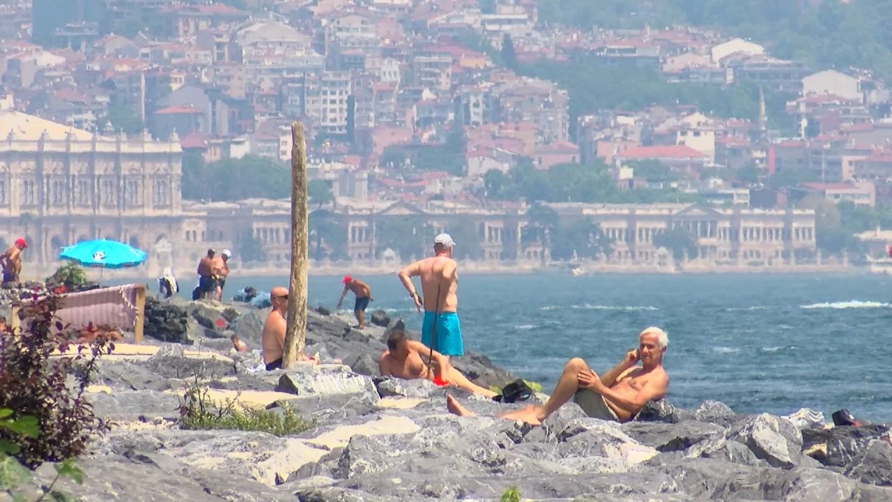 İstanbul'da son günlerde sıcaklıkların 30 derecenin üstüne çıkmasıyla bunalan vatandaşlar soluğu Sarayburnu Sahili'nde aldı. İstanbul Boğazı'nda denize girmek isteyen vatandaşların ilk tercihlerinden biri olan Sarayburnu'nda kimi vatandaş boğazın serin sularına atladı kimi ise kayalıklara uzanarak güneşlendi.