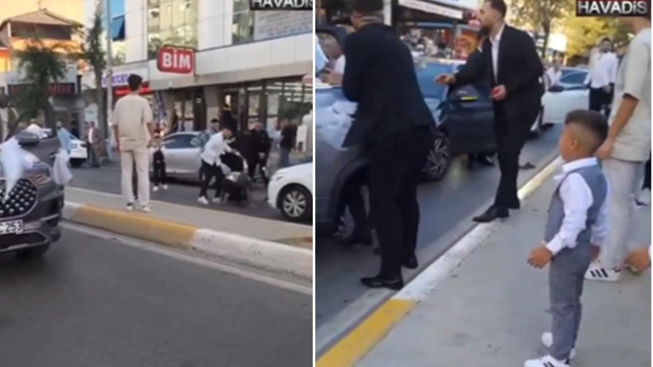 Ancak yollarının kesilmesine öfkelenen düğün konvoyundaki bir grup şahıs, araçlarından inerek şahsı uzaklaştırmak için şiddete başvurdu.