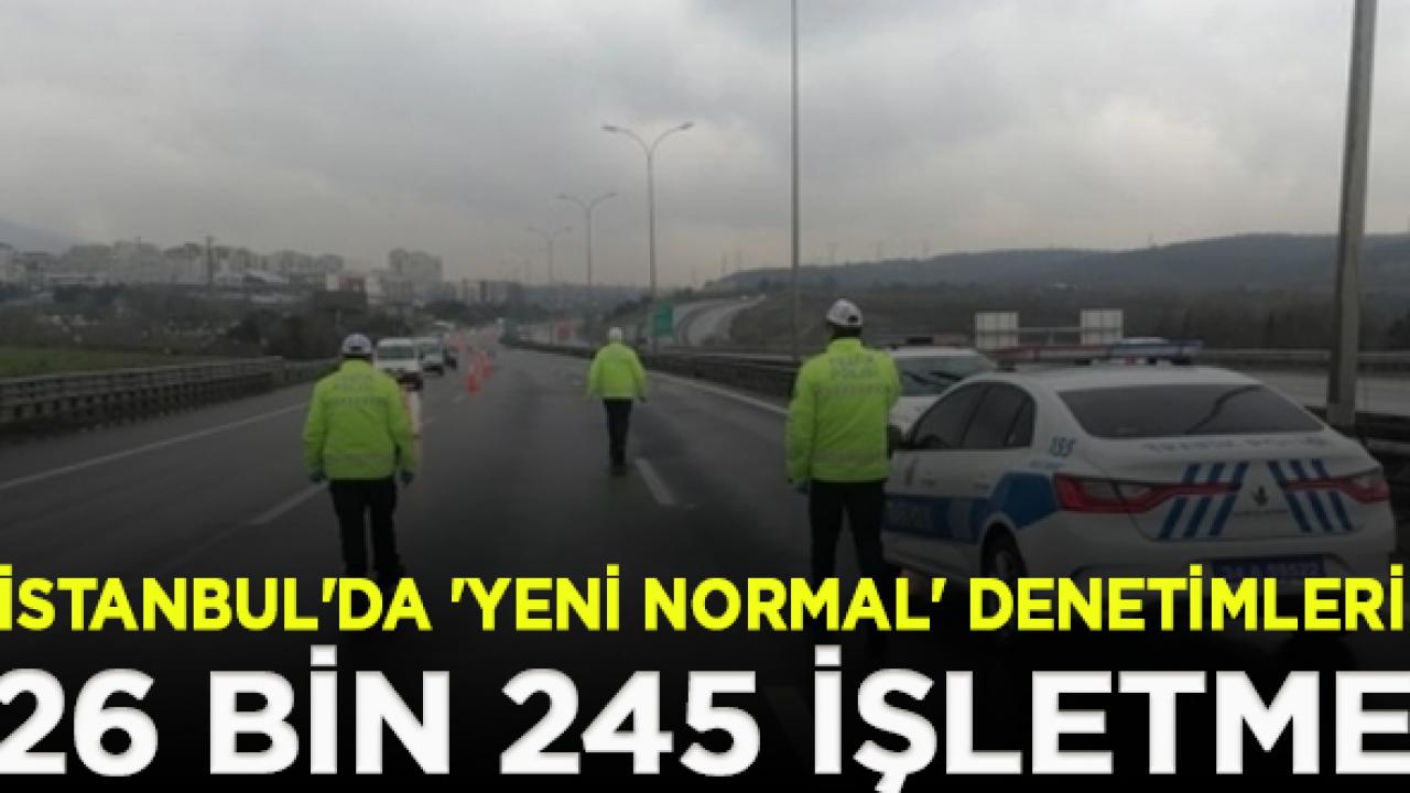 İstanbul'da 'Yeni normal' denetimleri kapsamında 15-21 Haziran tarihleri arasında 26 bin 245 işletme denetlenirken, 179 iş yerine ceza kesildi.Koronavirüs tedbirleri kapsamında İstanbul'da 15-21 Haziran tarihleri arasında 'Yeni normal' denetimleri yapıldı İstanbul Valisi Ali Yerlikaya sosyal medya hesabından yapılan denetimlere ilişkin bilgi paylaştı. Vali Yerlikaya'nın paylaşımında," İstanbul'da 15-21 Haziran tarihleri arasında 'YENİ NORMAL' denetimleri kapsamında; 26.245 işletme denetlendi, 179 işyerine cezai işlem uygulandı. Kurallara uyalım, uymayanları uyaralım." ifadeleri yer aldı.