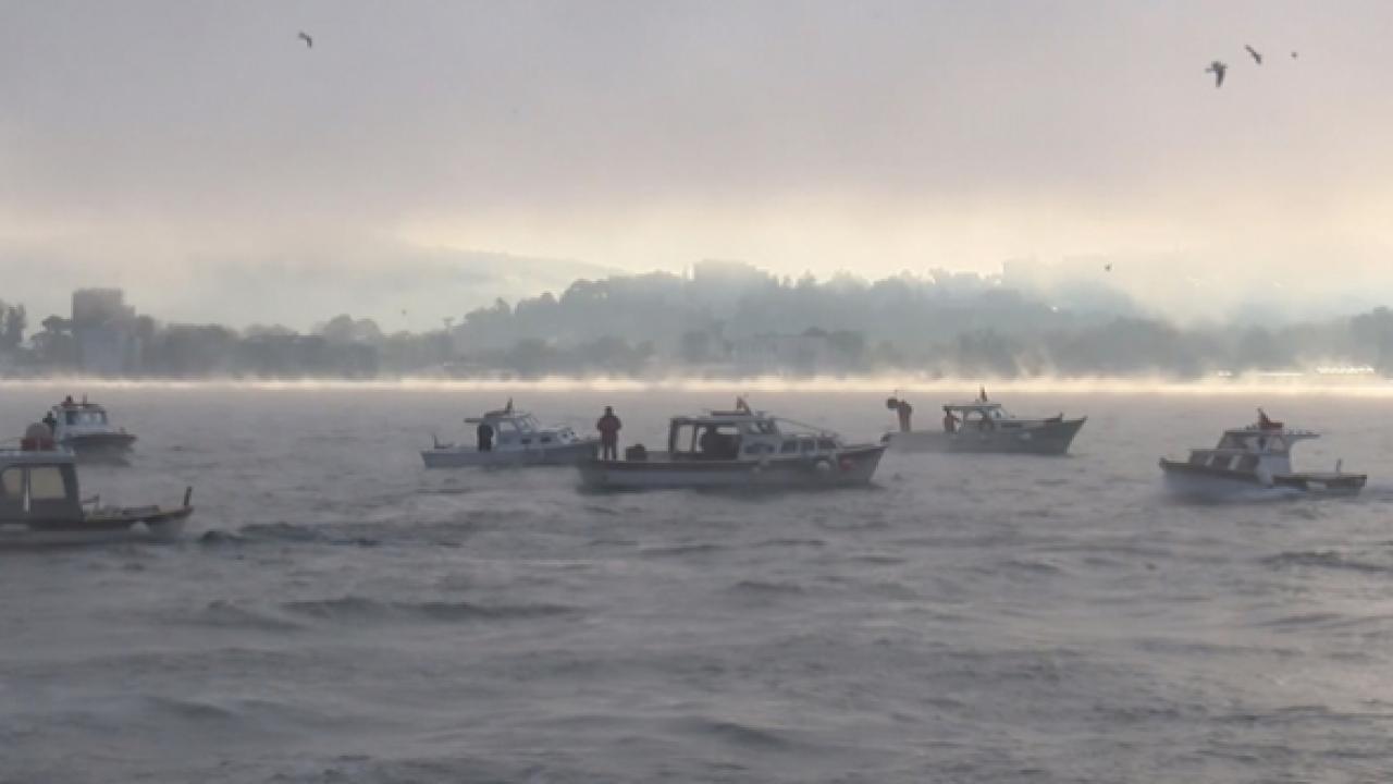 Öte yandan sisle kaplı Boğaz'da tekneleriyle balık tutanlar görsel şölen oluşturdu. Sahilde yürüyenler, eşsiz manzarayı telefonlarının kameraları ile görüntüledi.