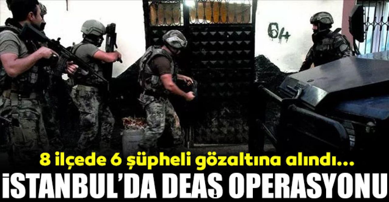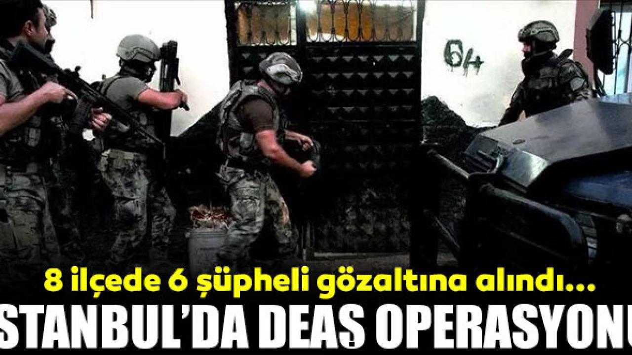 İstanbul'un 8 ilçesinde terör örgütü DEAŞ'a operasyon düzenlendi. 6 şüpheli gözaltına alındı. İstanbul Emniyeti'ne bağlı Terörle Mücadele Şube Müdürlüğü Polisleri; terör örgütü DEAŞ'a yönelik 8 farklı ilçede 10 ayrı adrese eş zamanlı operasyon düzenledi. 6 şüpheli yakalanarak gözaltına alındı ve şüpheliler sorgulanmak üzere İstanbul İl Emniyet Müdürlüğü'ne getirildi. SABAH