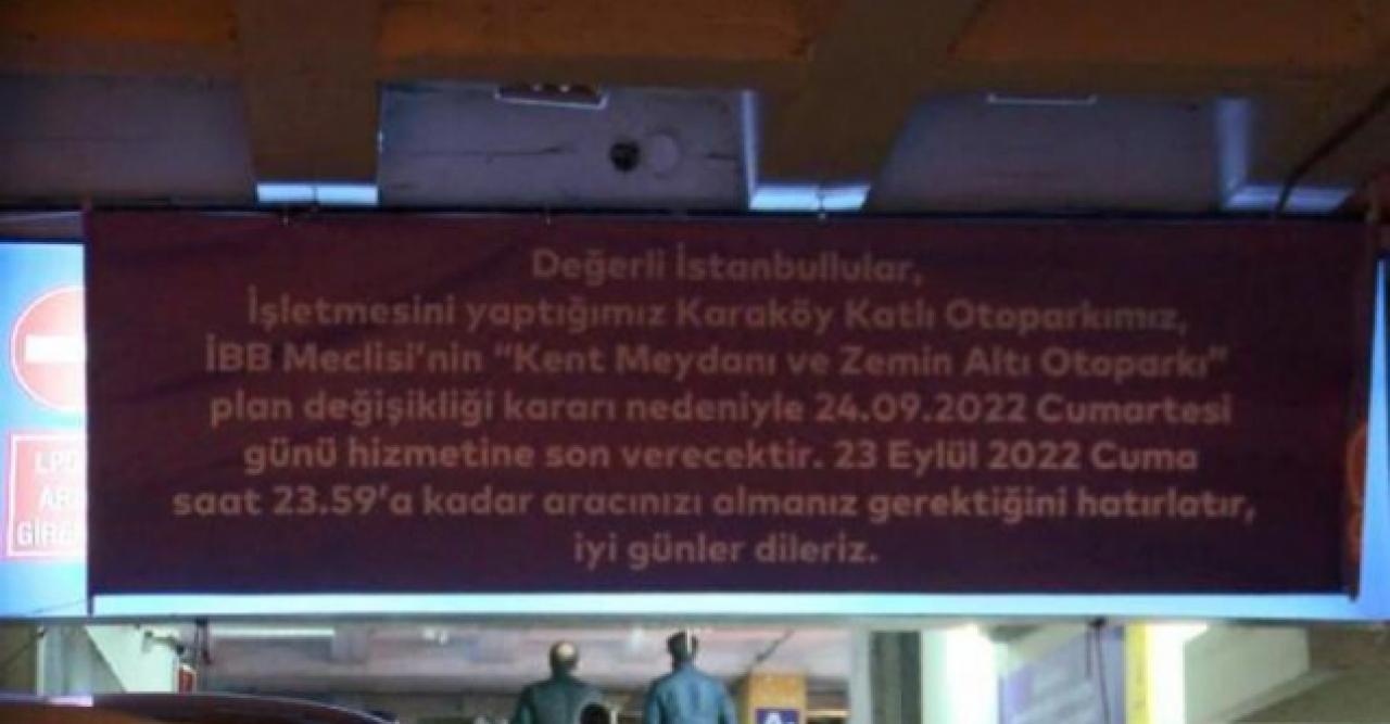 İstanbul Büyükşehir Belediyesi’ne ait Beyoğlu, Kemankeş Karamustafa Paşa Mahallesi, Mumhane Caddesi üzerinde bulunan 46 yıllık katlı otoparkı işletmeye kapatıldı. İstanbul Büyükşehir Belediye Meclisi tarafından alınan karar doğrultusunda, otoparkın yerine, meydan ve zemin altı otopark yapılacak. Ekim ayında yıkım çalışmalarının başlayacağı ve İstanbul’un ilk katlı otoparkı olma özelliğini taşıyan 7 katlı otoparkta günlük bin 500 araca hizmet veriliyordu.