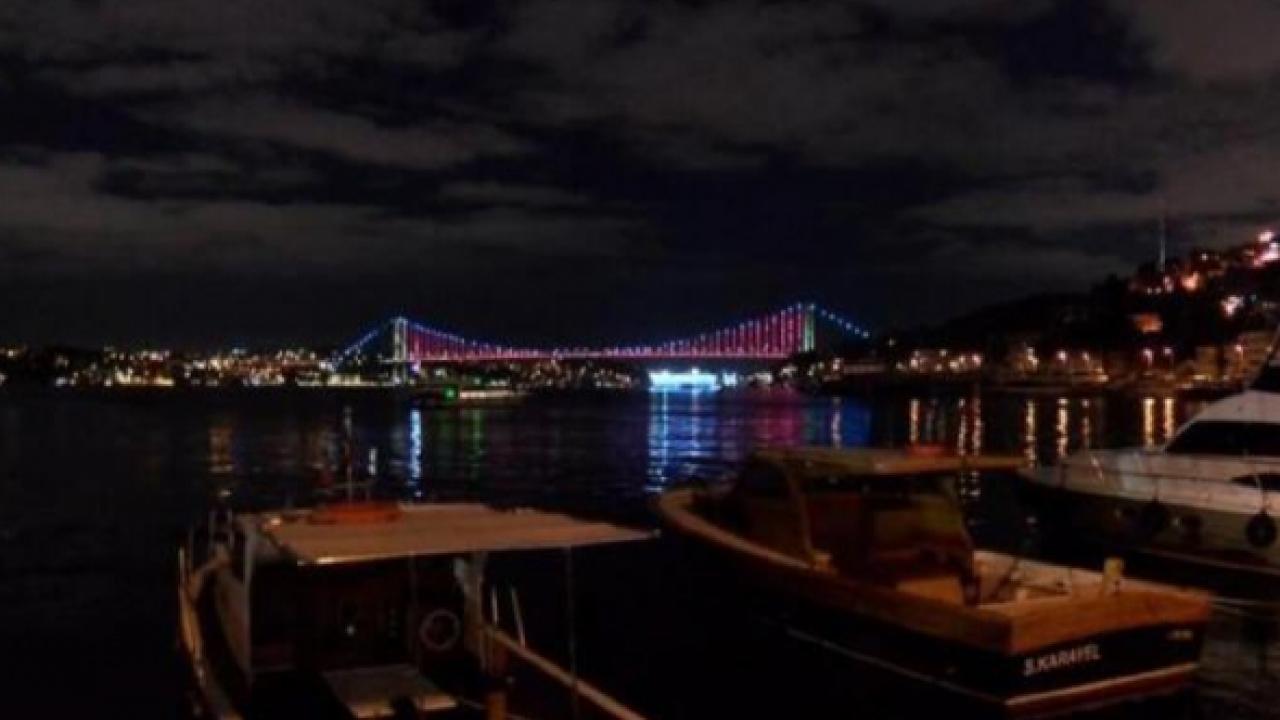İSTANBUL Boğazı'ndaki köprüler, Karabağ Zaferi'nin 2. yıl dönümü nedeniyle Azerbaycan bayrağının renkleri ile aydınlatıldı.