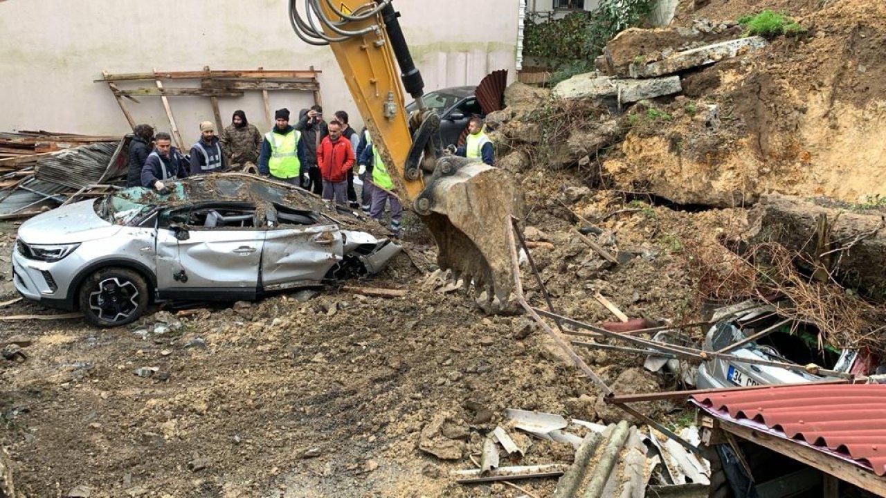 Ekipler, enkazın etrafına şerit çekerek güvenlik önlemi aldı. Bugün sabah saatlerinde iş makineleri ile olay yerine gelen belediye ekipleri enkaz kaldırma çalışması başlattı. Garajdaki 4 aracın üzerine yıkılan istinat duvarına ait enkaz kaldırıldıktan sonra hurdaya dönen araçlar çekiciler yardımı ile otoparka çekildi. Tedbir amacıyla boşaltılan evde ise inceleme çalışmaları devam ediyor.