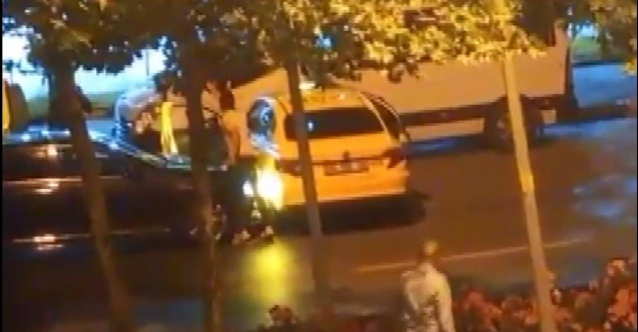 Beylikdüzü Adnan Kahveci Mahallesi'nde dün gece saatlerinde, dövülen bir kadını aracına alan taksi şoförü, iki şüphelinin saldırısına uğradı. Kadının eski nişanlısı ve arkadaşı olduğu öğrenilen şüpheliler, hareket eden taksiyi otomobilleriyle takip etti. Saldırganları atlamak isteyen şoför önce benzinliğe girdi, daha sonra caddeye çıktı. Çevredekiler dehşete düşüren saldırı olayını cep telefonu kamerasıyla kaydetti. Görüntülerde saldırganlar taksiyi çarparak durdurduğu görülüyor. Saldırganlardan birisinin taksinin üzerine çıkıp zıplamaya başlıyor. Diğer saldırgan ise taksi şoförüne hakaret ediyor. Taksicinin polisi aradığını gören saldırgan, şoförün peşinden koşup, tartaklamaya başlıyor. Şüpheliler korkudan taksinin içinde saklanan kadına yeniden saldırıyor.