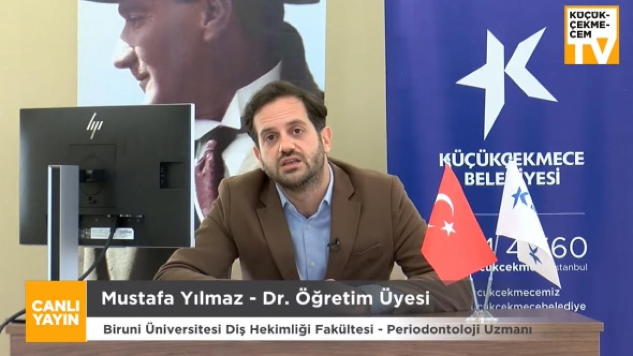 Pandemi sürecinde sosyal medya üzerinden birbirinden faydalı online içerikleri Küçükçekmecelilerle buluşturan Küçükçekmece Belediyesi, Periodontoloji Uzmanı Doç. Dr. Öğr. Üyesi Mustafa Yılmaz’ı konuk etti. Pandemi sürecinde ağız ve diş sağlığını online canlı yayında anlatan Yılmaz, bu süreçte diş tedavi merkezlerinin iyi havalandırılması gerektiğini söyleyerek, “ Diş hekimleri mecbur olmadıkça peş peşe hasta almamalı. Hastalara mutlaka bir triyaj yapılmalı, ateşleri ölçülmeli ve tek tek odalarda tedavi edilmeli. İki hasta arasında 15-30 dakika ara verilip ortam iyi bir şekilde havalandırılmalıdır. Kronik hastalığı olmayanlar, güvenli bir şekilde doğru önlem almış kurumlara gidip tedavilerini yaptırabilirler. Kronik hastalar ise acil tablolar gelişirse geçici ve olabildiğince kısa süreli tedavilerini yaptırarak, diş tedavilerini pandemi sonrasına ertelemelidir” diye konuştu.