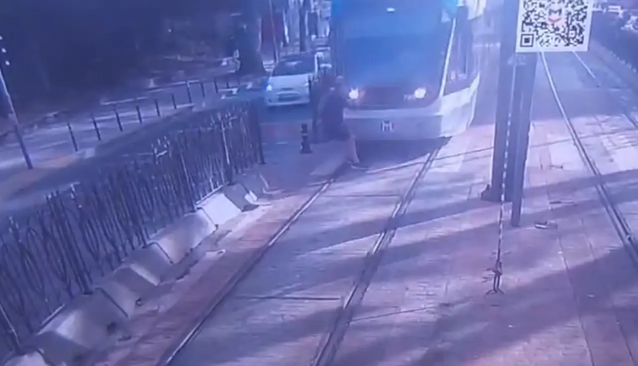 Öte yandan, kaza anı çevredeki güvenlik kamerasınca kaydedildi. Görüntüde, kırmızı ışığa rağmen koşarak yola çıkan yayanın, yolu geçerek tramvay hattına girmesi, burada tramvayı gördüğü anda duraklaması ile aracın yayaya çarptığı anlar yer aldı.