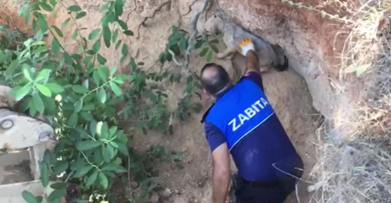 Tuzla’nın Akfırat Mahallesi’nde bulunan ormanlık alanda kimliği belli olmayan kişiler tarafından kaçak arama yapan define avcıları, yaklaşık 4 metre derinliğindeki çukuru kapatmadan bıraktı. Tuzla Belediyesi Zabıta Ekipleri bölgede gerçekleştirdiği kontroller sırasında çukur içerisine sıkışmış köpeği gördü. Ekipler, hızlıca kurtarma çalışmalarına başladı. Çukura inemeyen zabıta ekipleri belediyeden getirdikleri iş makinasının kepçesinin yardımıyla bir zabıta çukura inerek köpeği kucağında çıkarmayı denedi ama tüm çabalarına rağmen başarılı olamadı. Günlerce yalnız başına çukurda aç ve halsiz kalan köpek, zabıta memurunun tüm çabalarına karşı korkudan yaklaşmadı. Köpeğe yaklaşmaya çalışan zabıtaya saldıran köpek bir türlü ikna edilemedi.