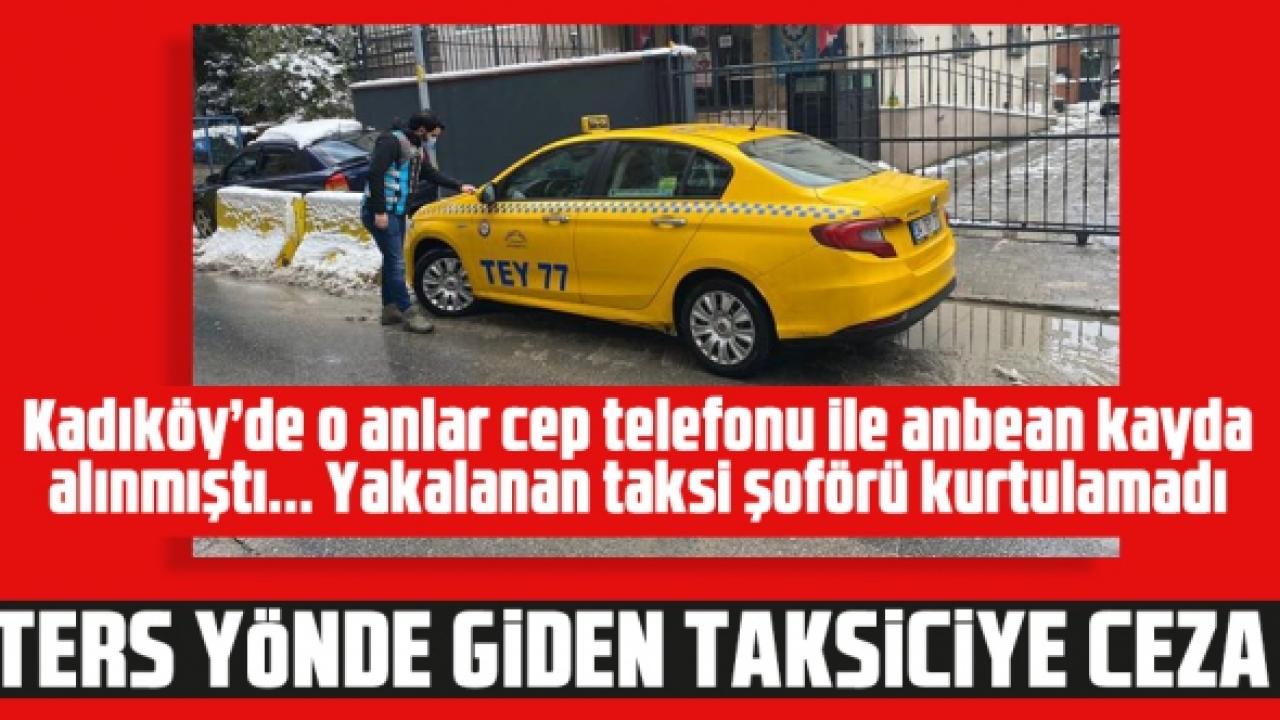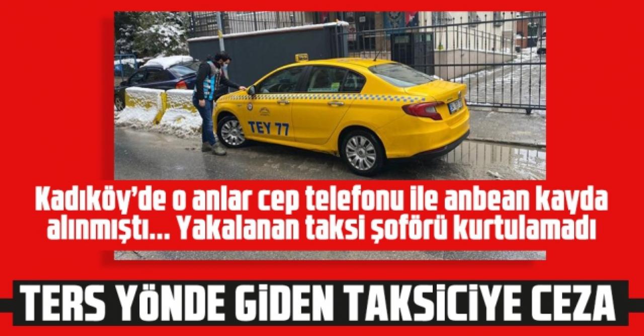 Görüntüler üzerine harekete geçen Trafik Denetleme Şube Müdürlüğü ekipleri, taksicinin kimliğini tespit etti. Yakalanan taksi şoförüne "Tek yönlü karayollarında araçların ters istikamette sürülmesi" suçundan bin 823 lira para cezası kesildi. Atanur E., ifadesi alınmak üzere Göztepe Polis Merkezi Amirliği'ne götürüldü. DHA