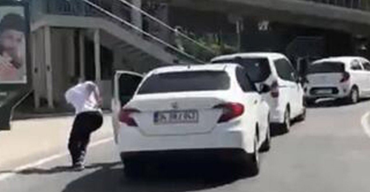 KADIKÖY'de trafikte yol verme kavgası yaşayan iki sürücüden biri aracından inerek diğer aracın camını defalarca yumrukladı. Saldırıya uğrayan sürücü hızla gaza basarak uzaklaştı. O anlar kameraya yansıdı.