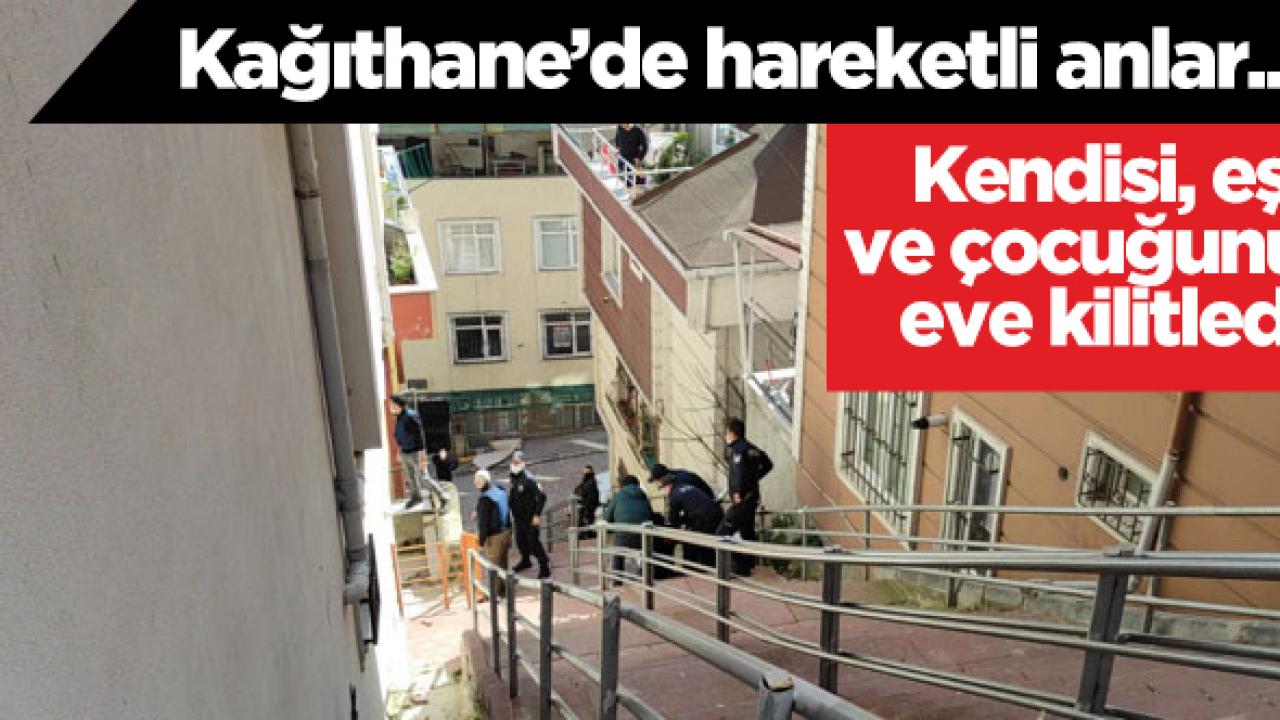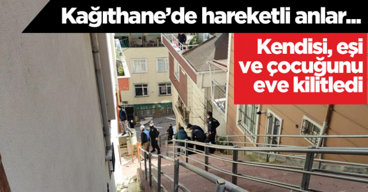 Kağıthane'de bir koca, eşi ve çocuğuyla birlikte kendini eve kilitledi.