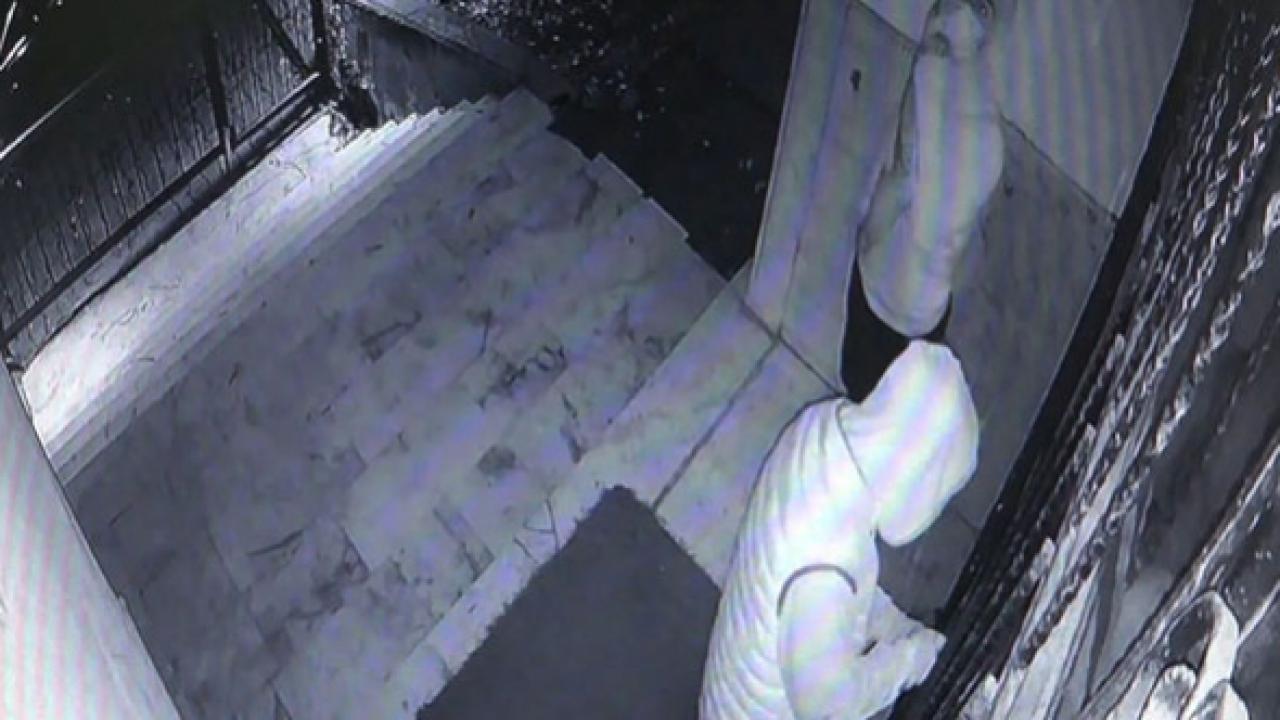 İki hırsızın binaya girerek kapıları kontrol etmesi ve ev sahibi ile göz göze gelmesi güvenlik kamerası tarafından kaydedildi. Görüntülerde iki hırsızın bina kapısını kart ile açarak içeriye girmesi ve daire kapıları açmaya çalışmaları görülüyor. Altı daire kapısını kontrol eden ve açmaya çalışan hırsız, yedinci dairenin kapısını açınca bir anda ev sahibi Ayhan Karataş ile göz göze geliyor. İki hırsız, ev sahibinin şaşkınlığını fırsat bilerek koşarak kaçıyor.