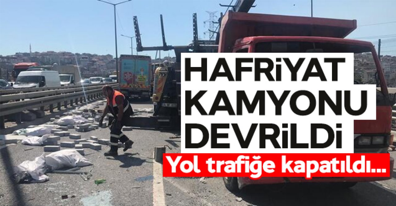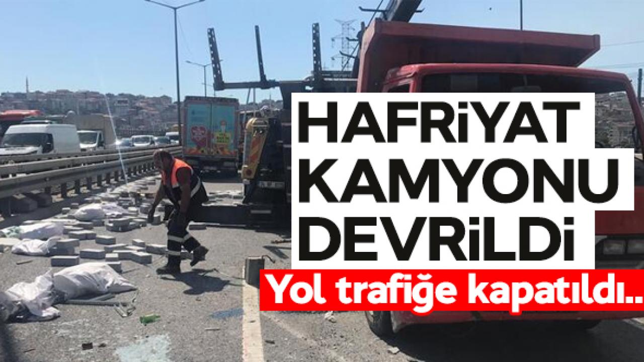 Kağıthane Sadabat Viyadüğü'nde hafriyat yüklü kamyon devrildi.