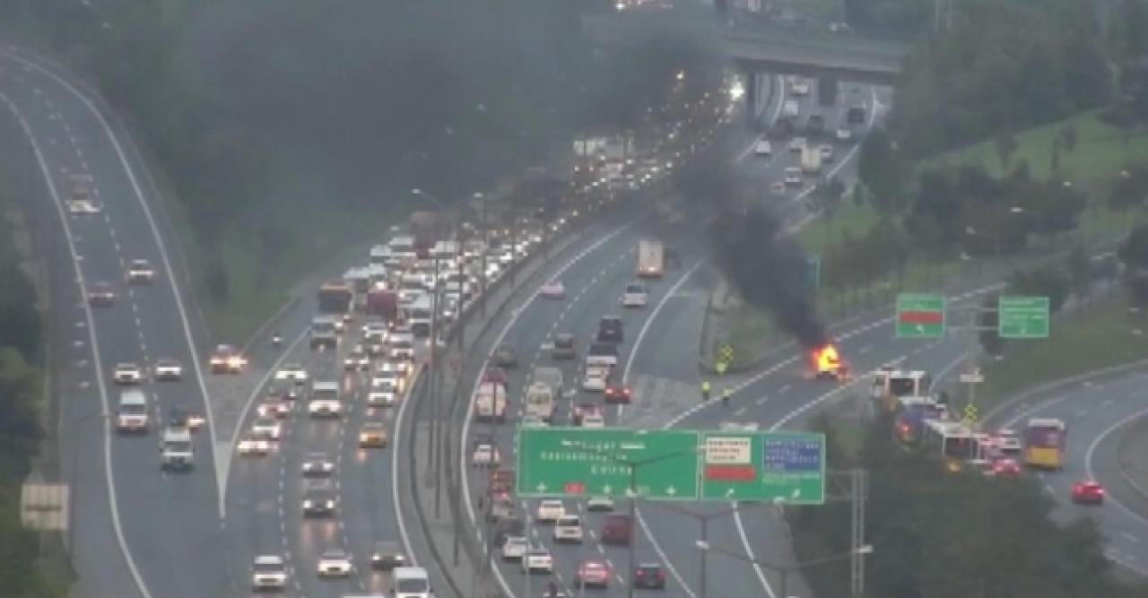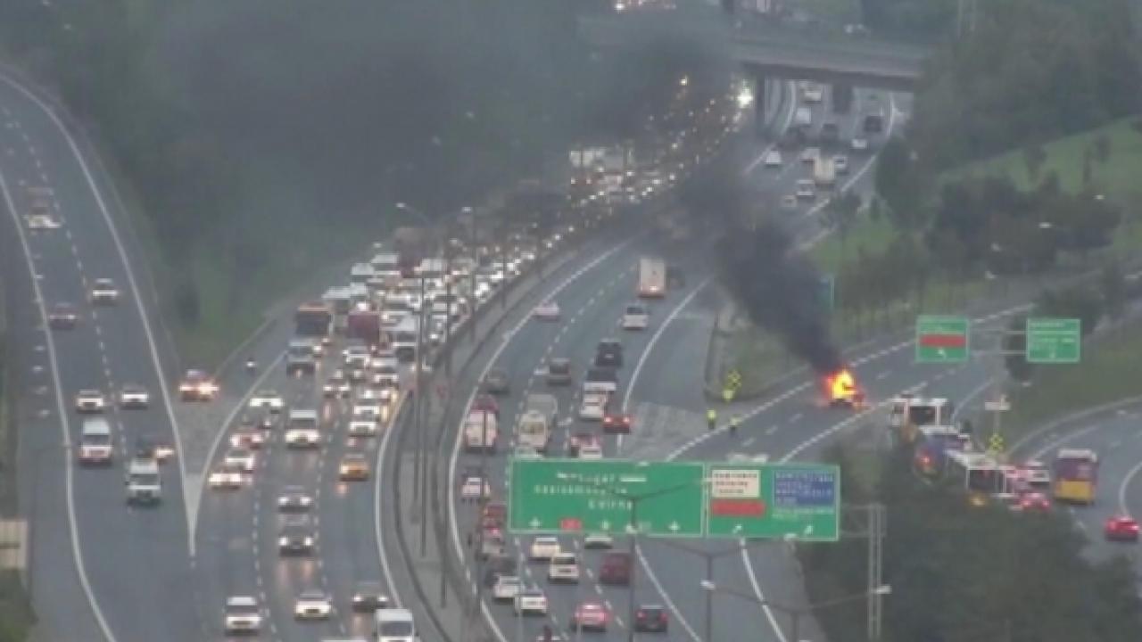 Kağıthane'de TEM Otoyolu üzerinde seyir halindeki minibüs, yan yoldan çıkan otomobile çarptı. Kazanın ardından otomobil alev alarak yanmaya başladı. Otomobilin sürücüsü kazada hafif şekilde yaralanırken, yangın itfaiye tarafından söndürüldü.