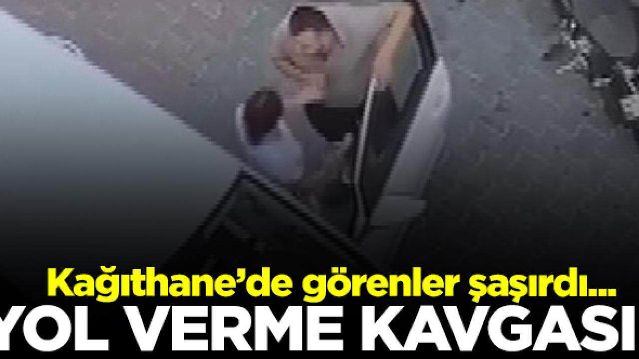 İstanbul Kağıthane'de yol verme tartışmasının kavgaya dönüşmesi sonrasında vatandaş araya girdi. O anlar kameraya yansıdı.