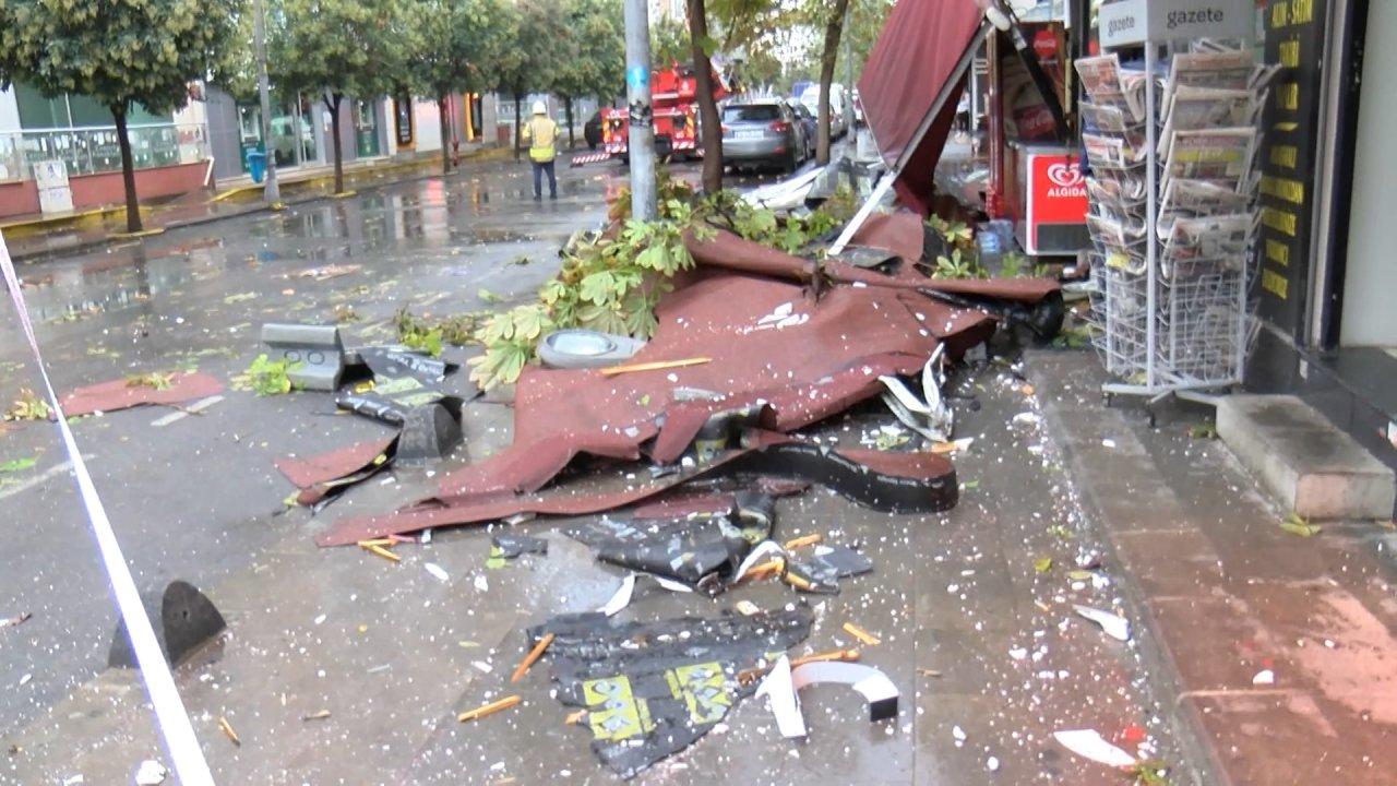 Küçükçekmece'de şiddetli rüzgarın etkisiyle 5 katlı binanın çatısından kopan parçalar 2 binaya çarptıktan sonra kaldırımda yürüyen kişinin başına düştü. Yaralı, ambulans ile hastaneye kaldırılırken 2 binada ve 2 iş yerinde hasar oluştu.