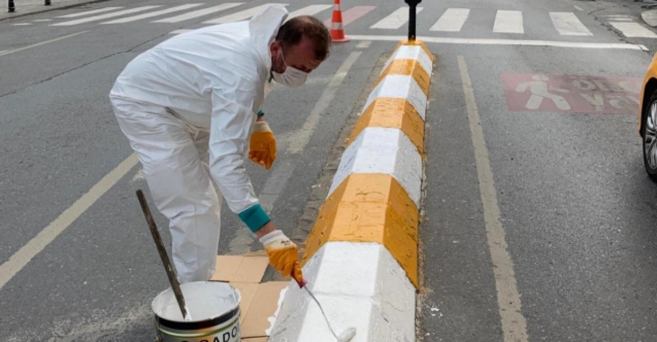 Ülke genelinde uygulanan tam kapanma dönemini fırsat bilen Beyoğlu Belediyesi, renkleri yıpranmış ve solmuş kaldırım taşlarını boyayarak yeniden renklendiriyor