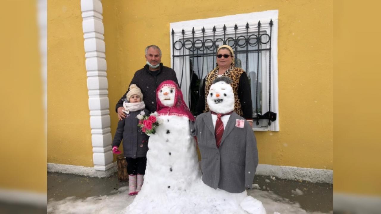 Çatalca'da her taraf beyaza bürünürken, İnceğiz Mahallesi sakinleri ise kardan gelin ve damat yaptı. Yoldan geçenler durup fotoğraf çekerken bazıları ise kardan çifte para taktı. Koronadan dolayı düğünlere, eğlencelere hasret kaldıklarını söyleyen mahalleli ise eğlenmek amaçlı kardan gelin ve damat yaptıklarını söyledi. Damada ceket, geline ise yazma bağlayan kadınlar Zülküf ve Zülfiye adını verdikleri kardan gelin ve damadın bol bol fotoğrafını çekti.