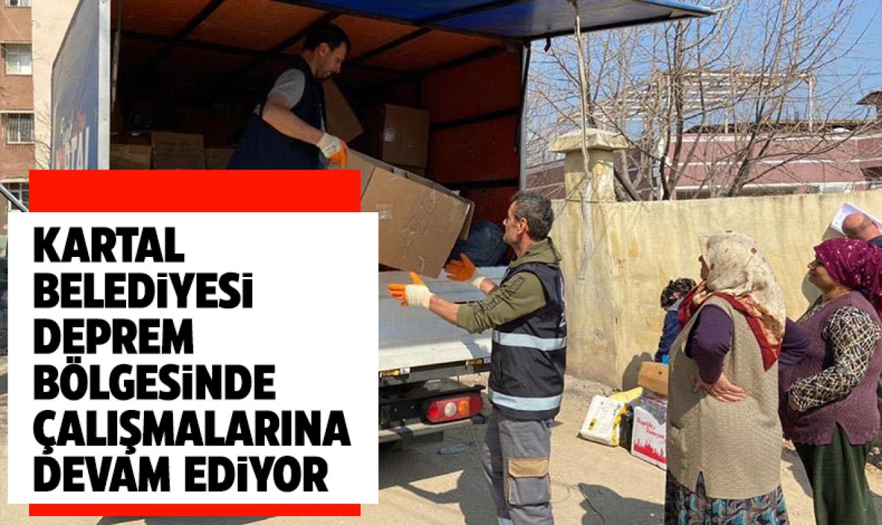 Depremin yaşandığı ilk günden itibaren, Kartal Belediyesi çalışanları depremzedeleri yalnız bırakmıyor. Kartal Belediyesi personeli, depremin vurduğu Hatay Antakya’da depremzedelerin yaralarını sarmaya devam ediyor. Ekipler, Kartal Belediyesi Afet Koordinasyon Merkezi’nde, hem depremzedelerin her gün sıcak yemek ihtiyacını karşılarken, hem de toplanan yardımları özellikle bölgedeki köylere götürerek ihtiyaç sahiplerine ulaştırıyor.