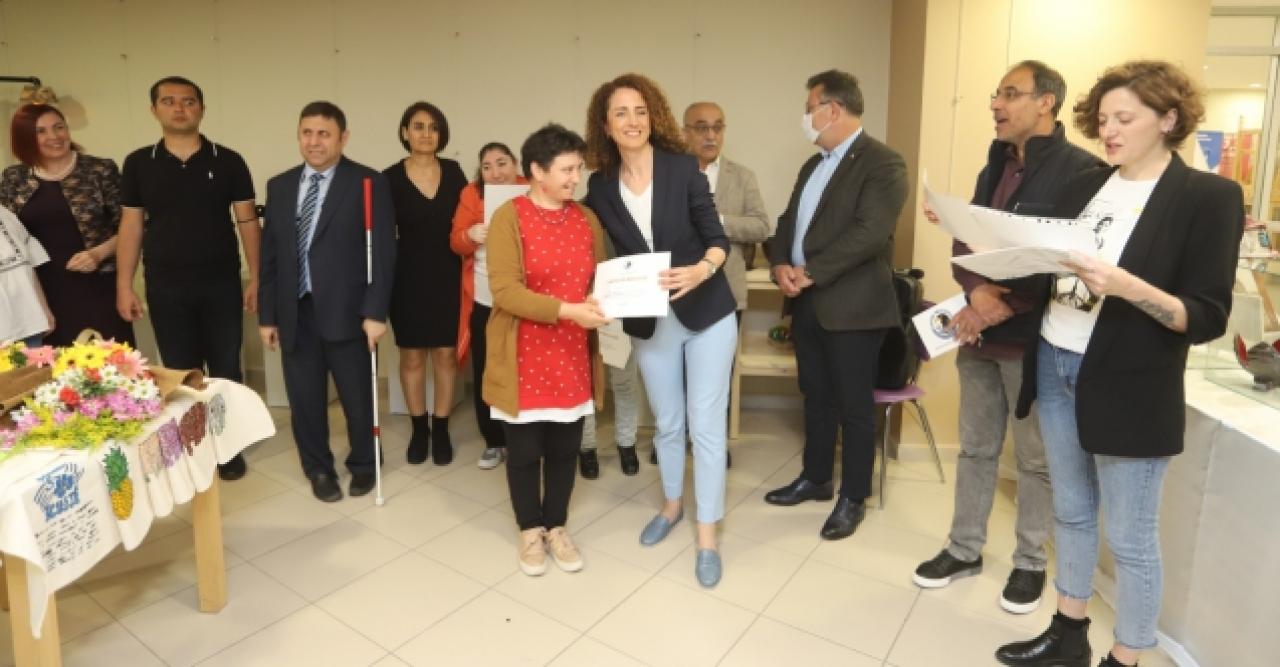Engelsiz Üretim Atölyesi’nde emek veren öğrencilerin katılım belgeleri de törenle verildi. Engelli bireyler tarafından üretilen el sanatları ve seramik ürünlerin yer aldığı sergi 13 Mayıs tarihine kadar ziyaretçilerini ağırlıyor olacak.