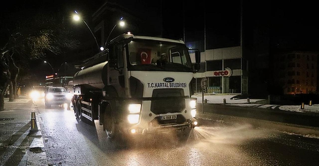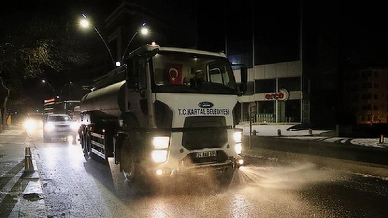 Kartal'da 24 saat aralıksız süren çalışmalarda sahada aktif olarak görev yapan 250 kişilik lojistik ekip ile birlikte toplamda 500 personel görev başında. Çalışmalarda 50'si karla mücadele olmak üzere toplamda 100 araç ise görev yapıyor. Karla mücadele kapsamında şimdiye kadar 300 ton tuz kullanıldı. Ekiplerin gece boyunca ana arterler üzerinde buzlanma riskine karşı yaptığı çalışmalarda ise 50 ton solüsyon kullanıldı.