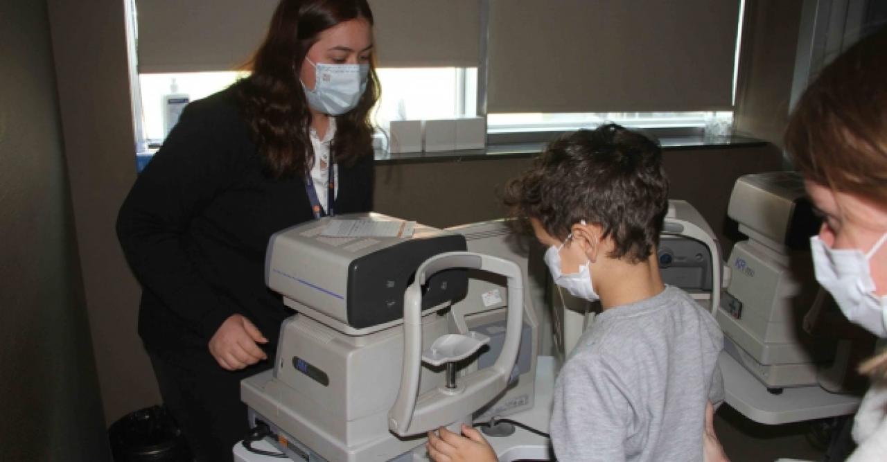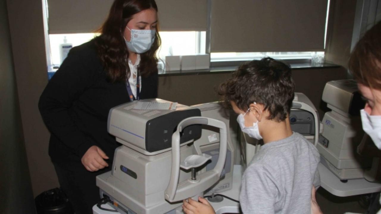 Kreşli minikler daha sonra öğretmenleri eşliğinde göz taramasının yapılacağı hastaneye giderek burada da detaylı bir muayeneden geçti. Yapılan muayenede miniklerin gözleri, özel bir tetkik cihazı ile incelendi.
