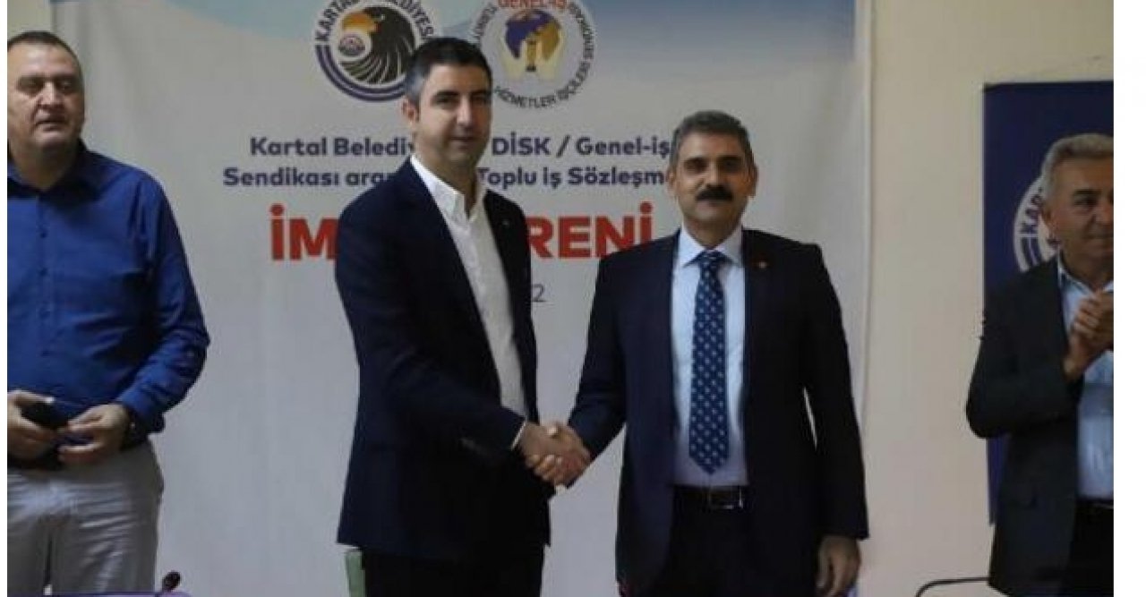 Kartal Belediyesi’nde 1400’ü sahada çalışan toplam 1800 işçi için Kartal Belediyesi iştirakı Kartursaş A.Ş ile DİSK Genel İş Sendikası arasında toplu iş sözleşmesi imzalandı. Çalışanlar tarafından sevinçle karşılanan yeni sözleşme ile taban ücrete toplamda yüzde 99’luk zam yapıldı. Şirket işçilerinin en düşük aylık ücreti yemek ve ikramiye hariç 9 bin 74 TL oldu.