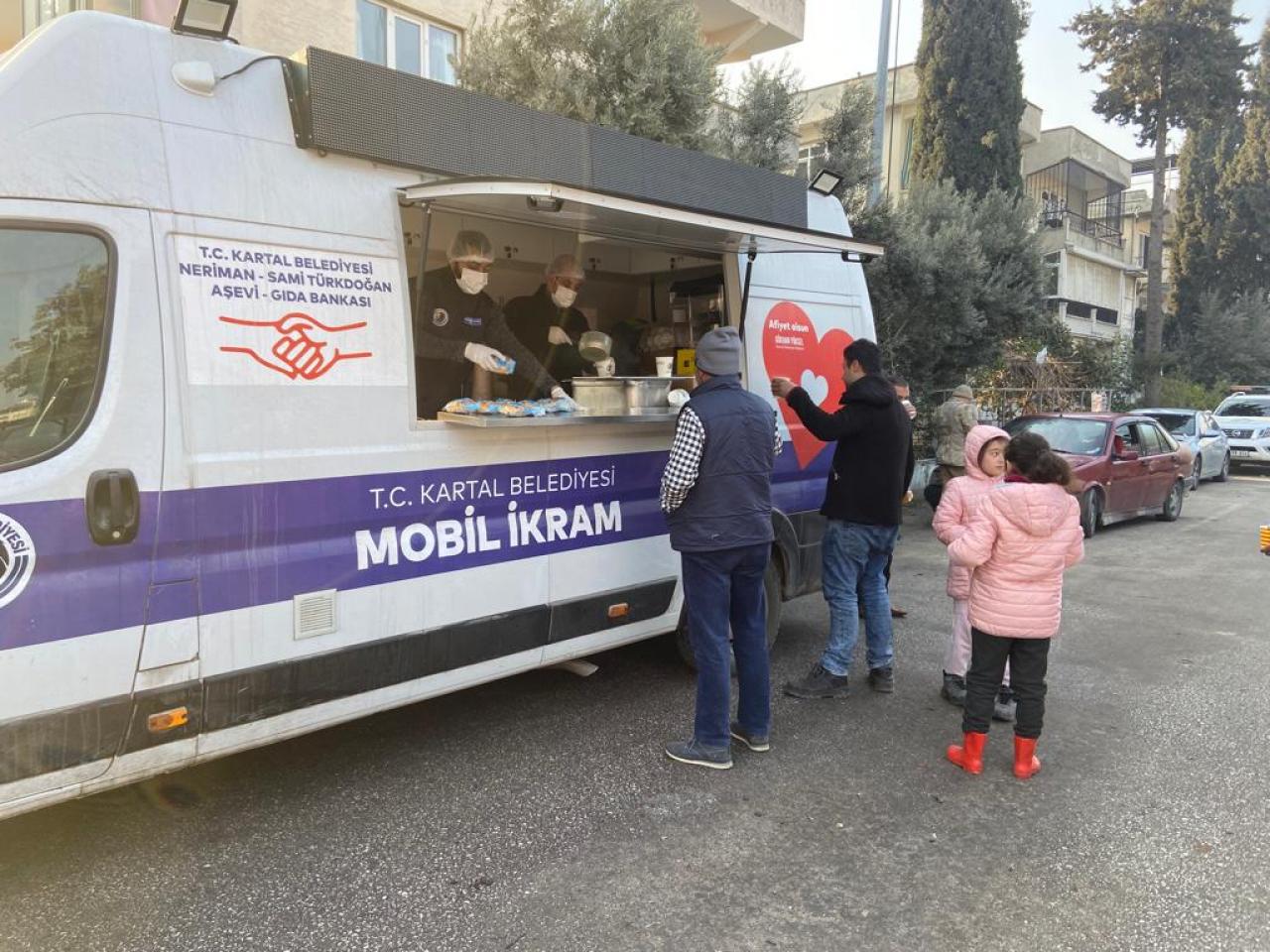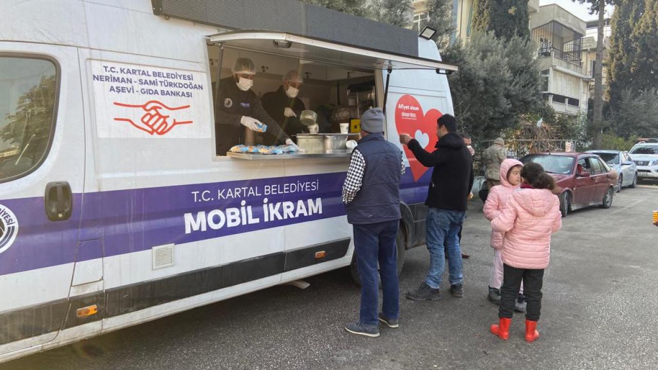 Kartal Belediyesi’nin Afet Koordinasyon Merkezi’nde hazırlanan yemekler son olarak mobil aşevi araçları ile Defne’ye bağlı Defne Selman Nasır İlkokulu önü, Dermakta ile Halisli Köyleri taziye evi ile Antakya Sevgi Parkı önünde depremzede ve arama-kurtarma ekiplerine ikram ediliyor.