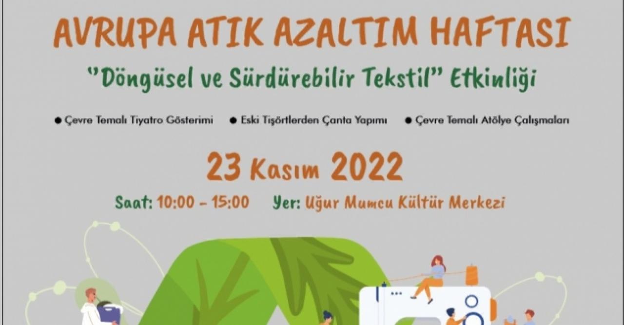 Uğur Mumcu Kültür Merkezi'nde 23 Kasım Çarşamba günü saat 10:00-15.00 aralığında gerçekleştirilecek olan 'Döngüsel ve Sürdürülebilir Tekstil’ etkinliğinde okul öğrencilerine yönelik çevre temalı tiyatrolar, iklim değişikliği ve sıfır atık konulu eğitim sunumu, çevre temalı atölye çalışmaları, eski tişörtlerden çanta yapımı da gerçekleştirilecek.