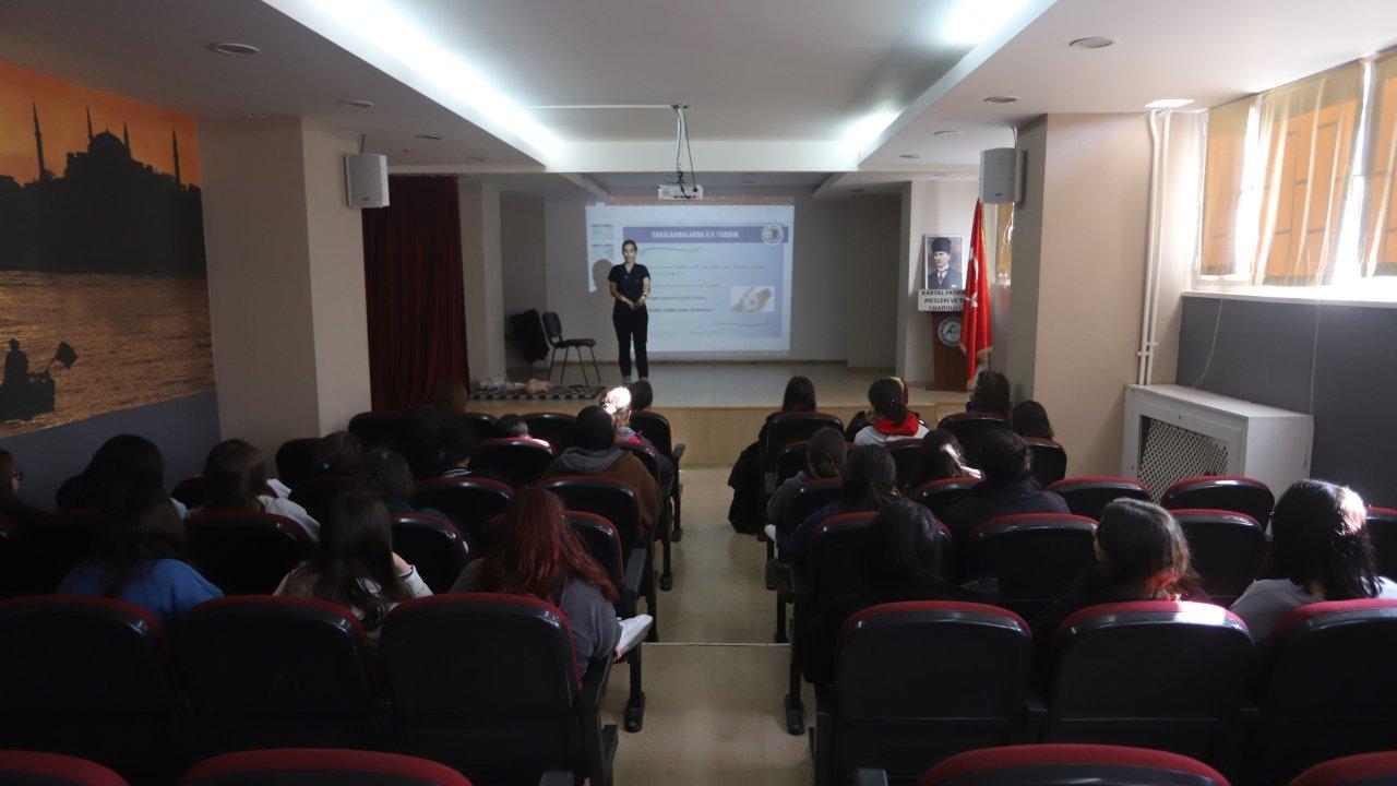 Kartal Belediyesi, ilçe genelinde sağlık hizmetlerini ve projelerini sürdürmeye devam ediyor. Kartal Belediyesi Sağlık İşleri Müdürlüğü tarafından insan sağlığı için ilk yardımın önemine vurgu yapmak amacıyla Kartal Fatma Aliye Mesleki ve Teknik Anadolu Lisesi öğrencilerine ilk yardım eğitimi verildi.