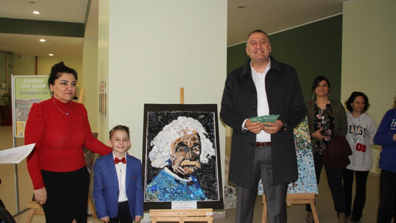Ambalaj atıkları, elektrikli ve elektronik atıklar, tekstil atıkları ve ahşap atıkları gibi geri dönüşümü mümkün olan malzemeler kullanarak yapılan tabloların katıldığı yarışmanın ödül töreninde birinci olan Eren Orhan Mavili ödülünü Kartal Belediyesi Başkan Yardımcısı Adem Uçar’ın elinden aldı. Ege Sanayi İlkokulu 2. sınıf öğrencisi olan Mavili; ‘Einstein’ adlı eseri ile 2 bin 500 liralık çeki kazandı.