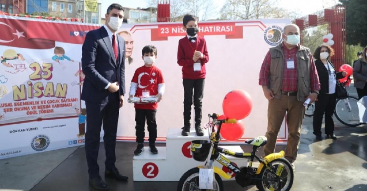 Atatürk Anıtı’na çelenk sunularak başlayan tören, bir dakikalık saygı duruşunun ardından İstiklal Marşı’nın okunmasıyla son buldu. Yaşları 4– 5 arasında değişen ve 3 farklı kategoride 377 resmin değerlendirildiği yarışmada çocuklara ödüllerini Kartal Belediye Başkanı Gökhan Yüksel ve Cumhuriyet Halk Partisi Kartal İlçe Başkanı Efendi Argunşah takdim etti. Şiir okuma (video) kategorisinde ise yine üç farklı yaş grubunda yapılan 94 başvuru arasından ilk üç sıralamaya seçilenlerin ödüllerini, İyİ Parti Kartal İlçe Başkanı Dr. Fuat Onbaşılı ve Demokrat Parti Kartal İlçe Başkanı Eray Ekim takdim etti. Resim ve Şiir Okuma yarışmalarının yaş gruplarının her birinde 1'inciye diz üstü bilgisayar, 2'nciye tablet ve 3'üncüye de bisiklet verildi.