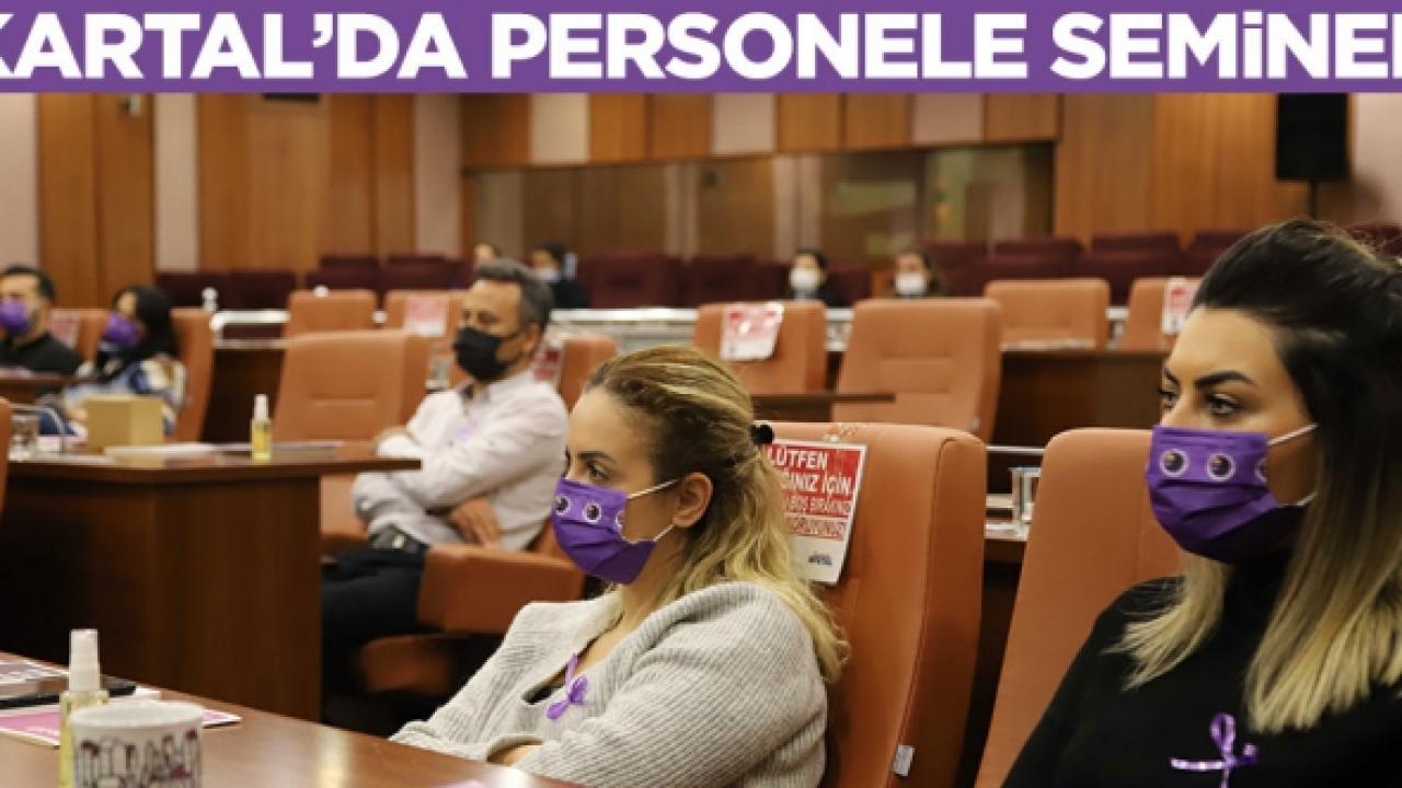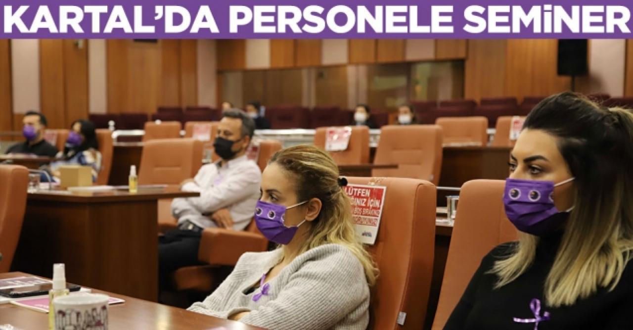 Kartal Belediyesi ve Mor Çatı Kadın Sığınağı Vakfı iş birliği ile düzenlenen seminere belediye çalışanları katıldı. Mor Çatı gönüllüleri Zeynep Ekin Aklar ve Büşra Sünetci’nin konuşmacı olarak katıldığı seminer interaktif bir sunum eşliğinde soru-cevap şeklinde gerçekleştirildi.