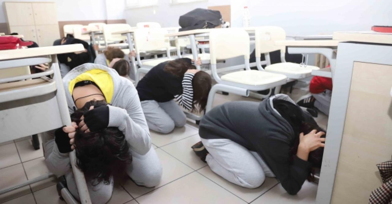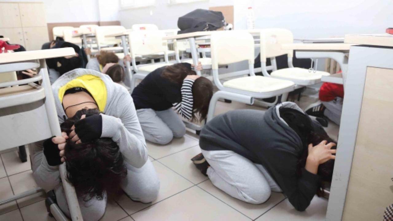 Kartal Burak Bora Anadolu Lisesi’nde gerçekleştirilen tatbikatta verilen alarmın ardından öğrenciler hayat üçgeni olan ‘Çök – Kapan – Tutun’ senaryosunu gerçekleştirerek deprem anında yapılması gerekenleri uygulamalı olarak yaşadı. Yapılan deprem tatbikatının ardından tüm okulun tahliye işlemleri de 3 dakika 20 saniye içinde yapıldı.