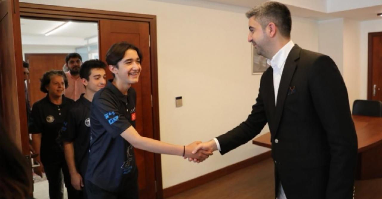 Başkan Gökhan Yüksel de ABD’den 42 takım arasından tüm Kartallılar’ı gururlandıran bir başarıyla dönen Göktürkler Takımı’nı makamında ağırladı.