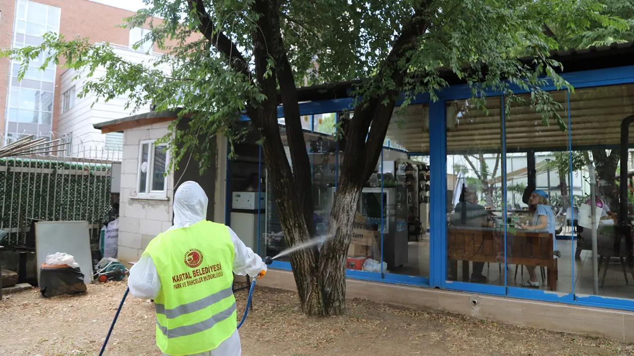 Kartal Belediyesi Park ve Bahçeler Müdürlüğü tarafından gerçekleştirilen çalışmalarda vatandaşların ve muhtarlıkların talep ve şikâyetlerinin yanı sıra müdürlük ekiplerinin de çalışması ile tespit edilen bölgelerde ilaçlama çalışması yapılıyor.