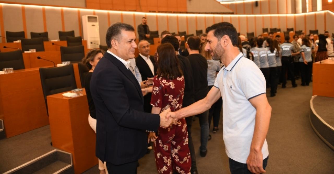 Esenyurt Belediye Başkanı Kemal Deniz Bozkurt, Kurban Bayramı öncesinde haftanın son mesai gününde belediye meclis salonunda personeller ile tek tek bayramlaştı.
