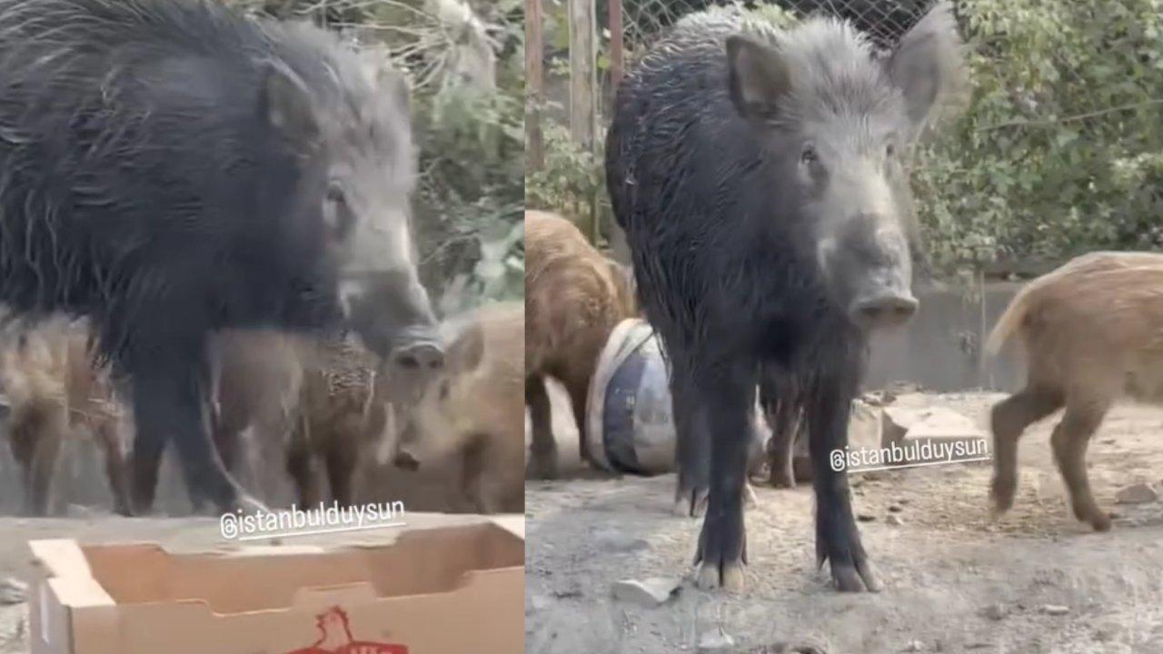 İstanbul/Kemerburgaz ormanı yakınlarında bir domuz yavruları ile birlikte yerleşik alana indi. Yiyecek aramak için gezen domuzları gören bir şahıs, aracında bulunan cipsi domuzlara ikram etti. Domuzların cipsi yemesiyle şaşkınlık içinde kalan vatandaş, o anları cep telefonu kamerasıyla kaydetti.