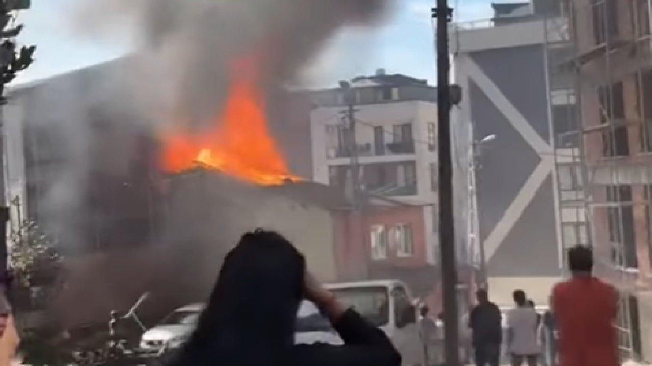 Bir binada çıkan ve vatandaşı korkutan yangın, çevre sakinleri tarafından uzaktan saniye saniye görüntülendi.