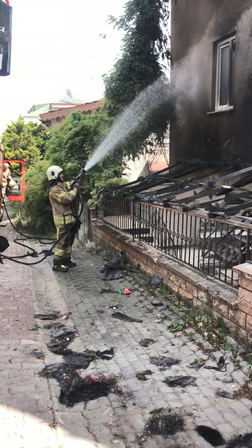 Gümüşpala Mahallesi Hanedan Sokak'ta bulunan, üç katlı binanın bahçesindeki tentede bilinmeyen bir nedenle yangın çıktı. Alevlerin, bina önünde park halinde bulunan otomobile sıçrama riskine karşı araç sahibine haber verildi. Otomobil bina önünden uzaklaştırıldı. Yangına çevredekiler yangın tüpleriyle müdahale ederken, ihbar üzerine olay yerine itfaiye ekipleri geldi. Çevreye yoğun duman yayılırken, yangın diğer katlara sıçramadan söndürüldü. Polis ekipleri binada yabancı uyruklu iki kişinin kaldığını tespit etti.