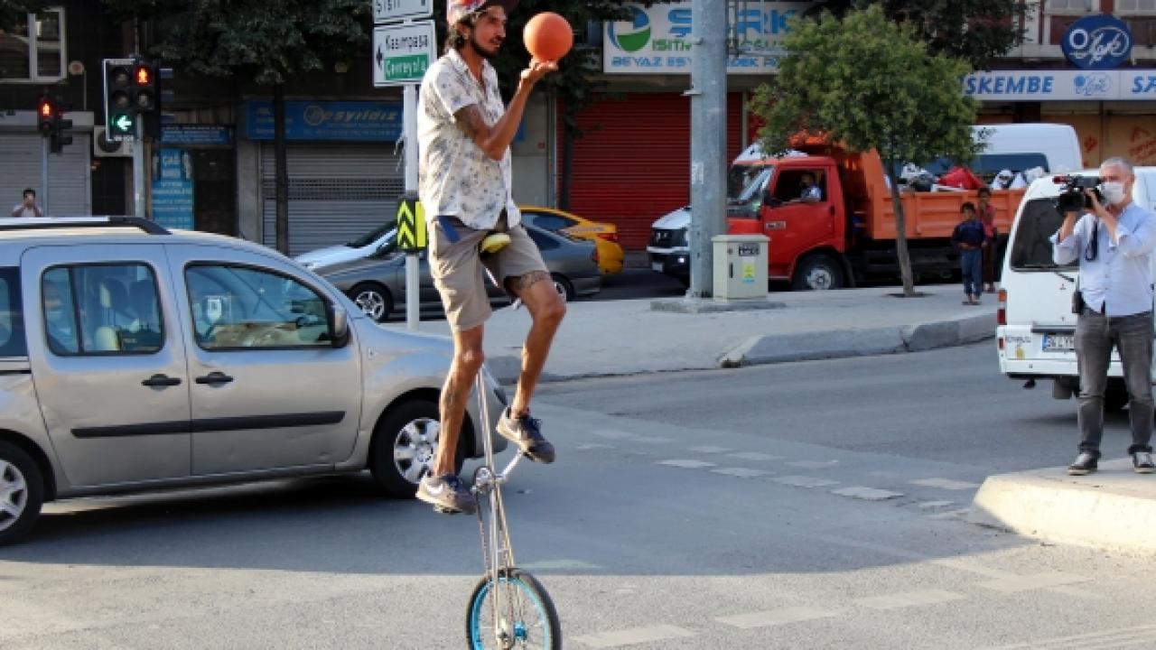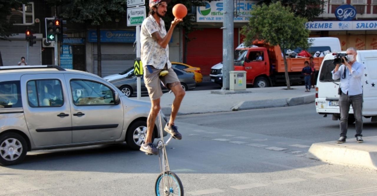 Kameralara yansıyan renkli görüntüler Beyoğlu, Dolapdere Caddesi'nde çekildi. Kırmızı ışığı yandığı sırada Kolombiyalı olduğu öğrenilen Alfonso Escobar isimli jonglör tek tekerlekli bisikletiyle yeşil ışığı bekleyen sürücülere keyifli anlar yaşattı. Araçlar için kırmızı ışığın yanmasıyla bisikletine atlayan jonglör, elindeki labut ve toplarla gösterisine imza attı. Karşılarında jonglörün ilginç şovunu gören vatandaşlarda cep telefonu kameralarıyla o anları kaydetmeyi ihmal etmedi. Trafik ışıklarında mendil satan çocuklarında jonglörün gösterisini büyük bir ilgiyle izlediği görüldü.