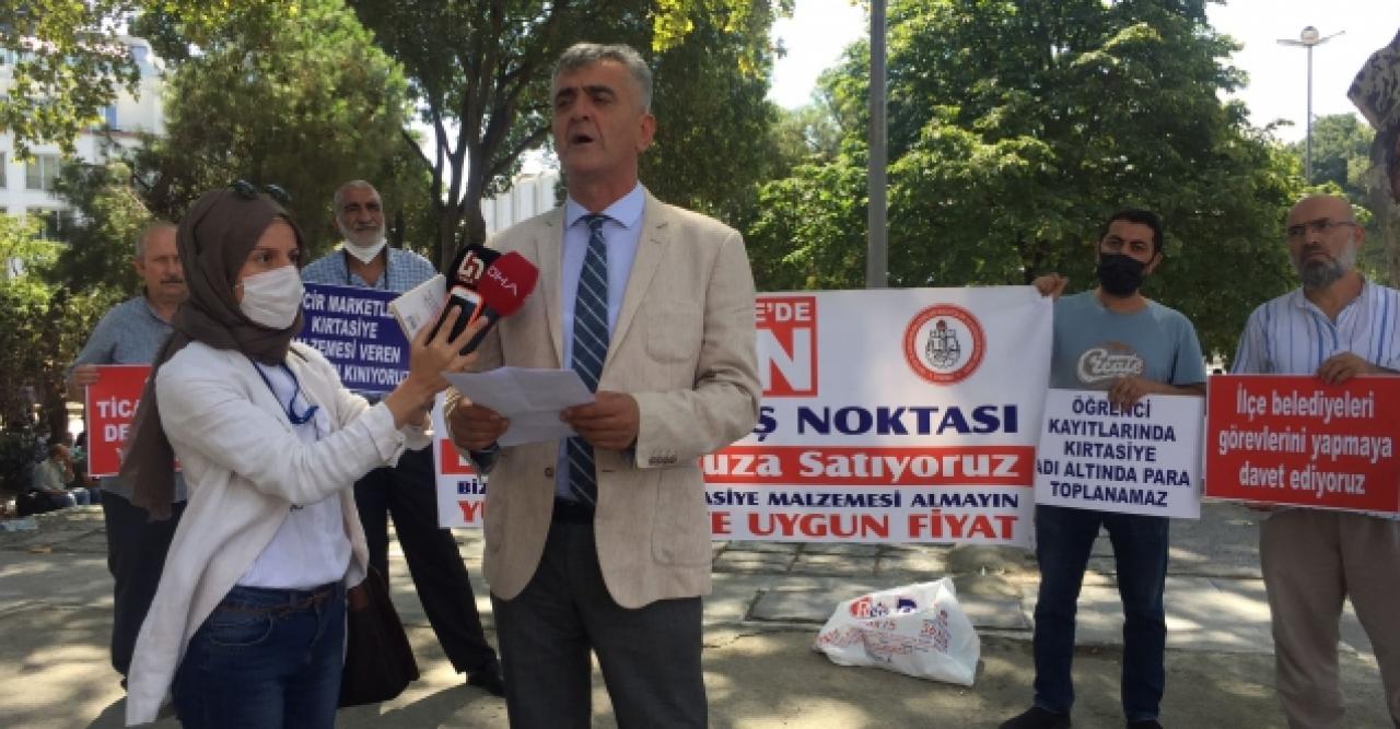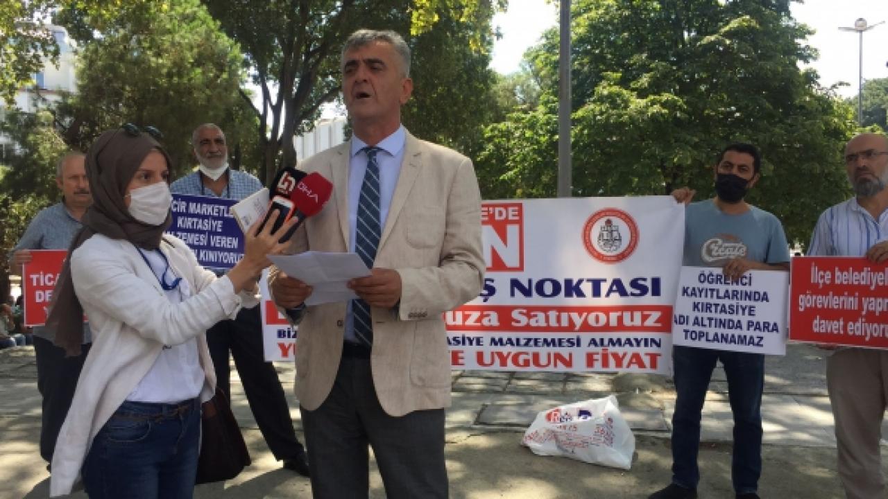 İstanbul Kırtasiyeciler Odası Başkanı Yavuz Tekçe'nin grup adına okuduğu basın açıklamasında, "Dünyayı kasıp kavuran Covid-19 salgını ülkemize de ekonomik anlamda büyük zararlar vermektedir. Salgından tüm sektörler etkilenmektedir. Fakat kırtasiye sektörü okulların kapalı olmasından dolayı ağır ekonomik kayıplar vermiş, hala daha vermektedir. Esnafımız iki dönemden beri ekonomik sıkıntıya düşmüş, zaruri giderlerini karşılayamaz hale gelmiştir. Birçok zincir marketin okul sezonunda ve diğer günlerde kırtasiye ürünleri satışı yaparak kırtasiyeci esnafımızın yok olmasına sebep olmaktadır. İl sınırları içerisinde bulunan zincir marketlerin sermayeleri çok güçlü olup, her sokakta sayıları anormal şekilde artarak küçük esnafı resmen bitirmişlerdir. Tüm zincir marketlerde kırtasiye ürünleri satışının yasaklanması için gereğinin yapılmasını hassasiyetle arz ederiz" ifadeleri yer aldı.