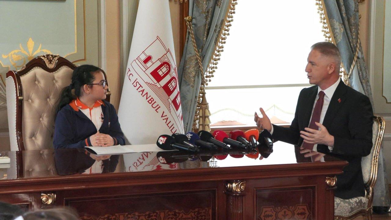Ardından bir konuşma yapan Vali Gül, "Öncelikle Sayın Valimizi tebrik ediyoruz. Gerçekten kendini çok güzel yetiştirmiş. Seni yetiştiren anneyi, öğretmenlerinizi tebrik ediyorum. Hem diksiyonu çok güzel, hem de verdiğim mesajlar çok çok iyi. İnşallah yarının gençleri olarak mutlu olduğunu, yapmak istediğiniz işleri yaparsınız. Arkadaşlarınızı tebrik ediyorum bir ekip olarak geldiniz. İstanbul'da da, Türkiye'de de eğitimdeki kalitemiz tıpkı diğer alanlarda olduğu gibi her geçen gün bir öncekinden daha iyiye gidiyor. Bugün ihtiyaç olarak görülen meselelerin önemli bir kısmını 5 sene önce, 10 sene önce, 30 sene önce hayal bile edemezdik; ama daha iyisi her zaman mümkün. Özellikle eksikliğini hissettiğiniz yürüme mesafesindeki kütüphaneler, yürüme mesafesindeki okullar, yeşil alanların artırılması, düzenli bir şehirleşmenin yapılması sadece çocuklar için değil, hepimiz için çok çok önemli bir ihtiyaç. Talimatlarınızı aldık. İnanıyorum ki bundan birinci derecede sorumlu olan belediyelerimiz de bu talimatlarınızı almıştır" diye konuştu. Vali Gül, sözlerini dünyadaki tüm çocukların 23 Nisan Çocuk Bayramını kutlayarak bitirdi. Kendisini ziyaret eden öğrencilerle fotoğraf çektiren Vali Gül, çocuklara hediyeler de verdi.
