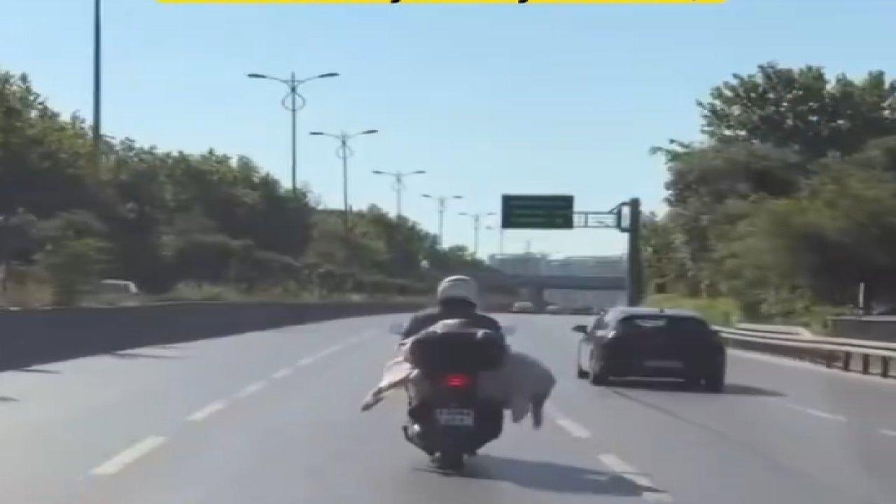 Kurban Bayramının ilk gününde yurdun dört bir yanından şaşırtan görüntüler gelmeye devam ediyor. İstanbul'da bir motosikletli, küçükbaş kurbanlığı motosikletinin arkasına alarak kara yolunda yolculuğa çıktı. Tehlikeli yolculuk vatandaşın cep telefonu kamerasına yansırken, motosikletlinin rahat tavırları dikkat çekti.