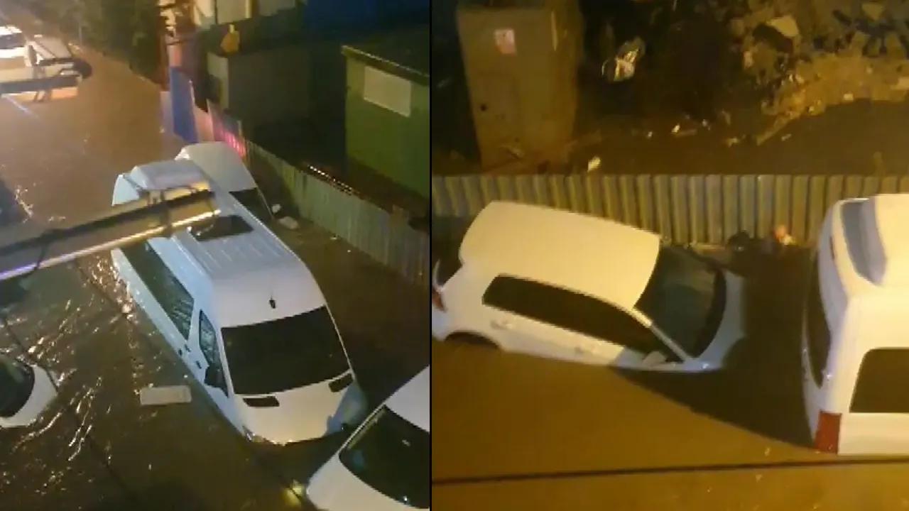 Kırlangıç Sokak'ta sel sularından etkilenen araçlar sürüklenerek birbirine girdi. O anlarda arada kalan bir vatandaş ise tehlike atlattı. Sokakta yaşananlar saniye saniye cep telefonu görüntülerine yansıdı.