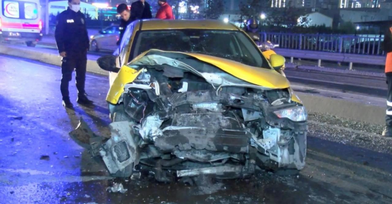 Küçükçekmece'de sürücüsünün direksiyon hakimiyetini kaybettiği otomobil karşı şeride geçerek taksi ile kafa kafaya çarpıştı.