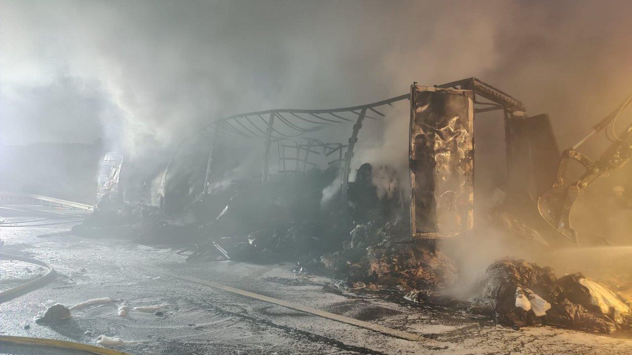 Yangın, saat 05.00 sıralarında Kuzey Marmara Otoyolu 18. Viyadük üzerinde seyir halindeki TIR'da çıktı. Otoyolda Ankara istikametine ilerleyen ve Batman'a gittiği öğrenilen 47 AAF 636 plakalı kumaş yüklü TIR'da bilinmeyen nedenle yangın çıktı. TIR'ın şoförü alevleri fark ederek aracı emniyet şeridine çekti. İhbar üzerine olay yerine trafik jandarma ve itfaiye ekipleri sevk edildi. İtfaiye ekipleri alevlere müdahale ederken, jandarma ekipleri otoyolda güvenlik önlemi aldı. İtfaiye ekiplerinin müdahalesiyle yangın kontrol altına alınarak söndürüldü. Yangının ardından TIR'da büyük çaplı hasar oluştu. Olayla ilgili inceleme başlatıldı.