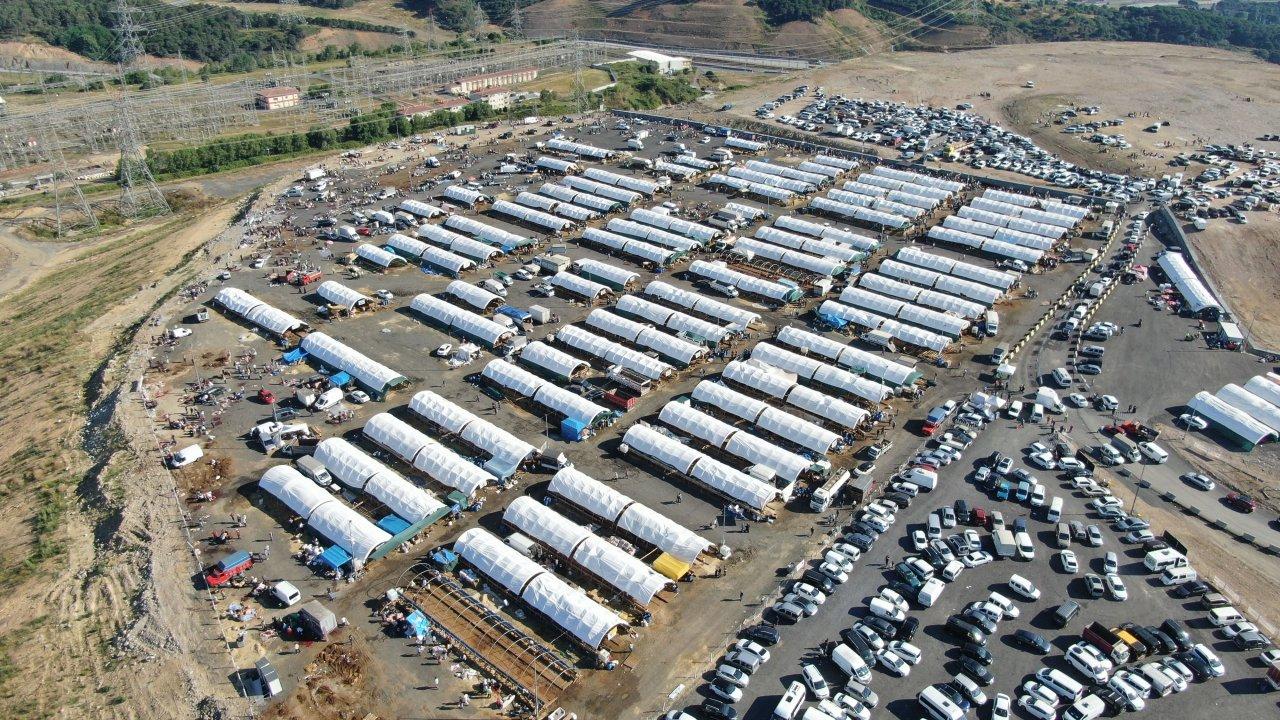 Sabahın erken saatlerinde alanlara gelenler içeri girebilmek için uzun araç kuyrukları oluştu. Sultangazi'de bulunan Kurban satış ve kesim alanındaki yoğunluk havadan görüntülendi.