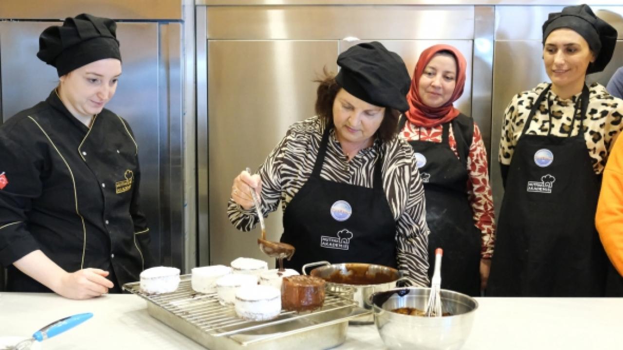 Değirmenpark, Güzelce Sanat Merkezi, Mimaroba Halide Edip Adıvar Eğitim ve Sosyal Tesisleri’ni ziyaret eden Hatice Akgün kursiyerler ile birlikte çikolata yaptı. Büyükçekmece’de Değirmenpark, Güzelce Sanat Merkezi ve Mimaroba Halide Edip Adıvar Eğitim ve Sosyal Tesisleri’nde ahşap boyama, iğne oyası, deri keçe, kadın giyim dikiş, kumaş boyama, Meksika nakışı, amigurumi, takı tasarım, tel kırma, kırkyama, su kabağı işlemeciliği, kanaviçe, örgü, aşçı ve pastacı çıraklığı gibi farklı branşlarda eğitim alan kursiyerlerin talep ve önerilerini dinleyen Hatice Akgün, Mutfak Akademisi’nde kursiyerlerle birlikte çalıştı.